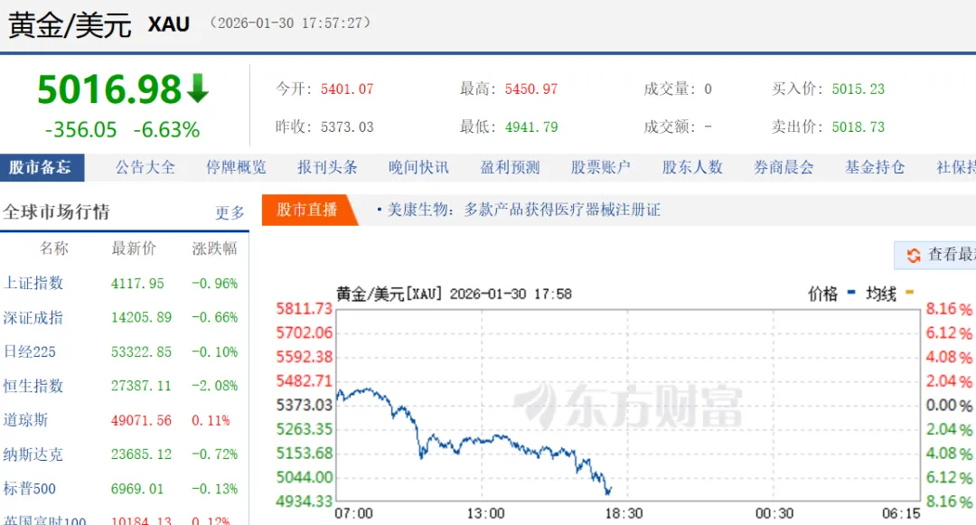 北京时间1月31日凌晨,现货白银价格单日暴跌36%,创下历史最大日内跌幅;现货黄金价格也下跌超过12%,跌破每盎司4700美元关口,创下40年来最大单日跌幅。